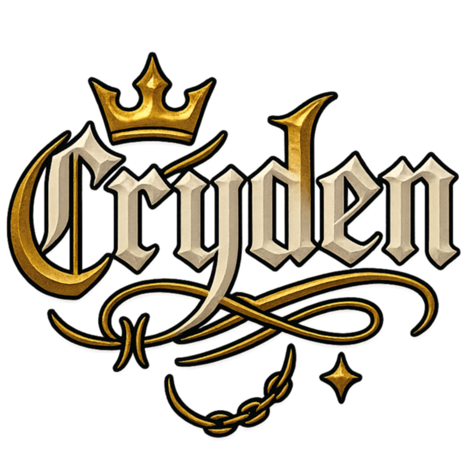 Back: Cryden-Schriftzug im gold-schwarzen Old-English-Design – ikonisch und zeitlos.